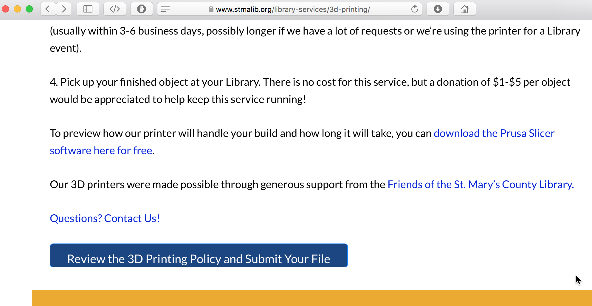 In this section, the STL file will be tweaked for the specific 3D Printer used by the Leondardtown, Maryland library's makerspace. If you are using a different printer, simply set PrusaSlicer (or your slicing software) to your specific printer and adjust as needed.