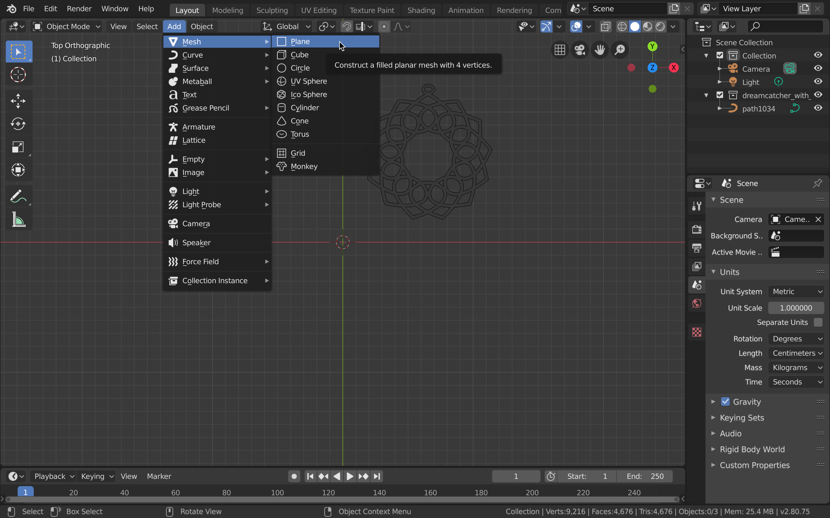 - With the dreamcatcher selected, change to Edit Mode.