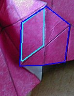 Here are the things to look at for step 10. The yellow line is the fold, and it extends up underneath the z'd flap.