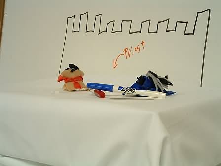 Inigo: We couldn't afford a rope, so we used the holocaust cloak rolled up.